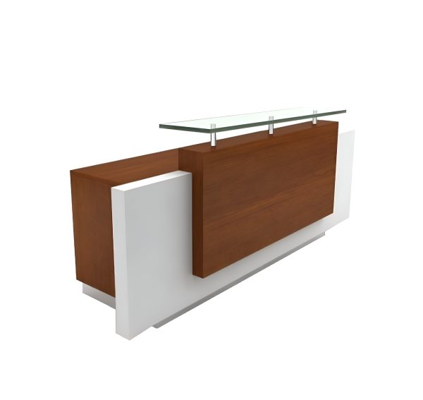 Cristal templado a 6mm. de espesor, sujeto con soportes de acero sobre mostrador.