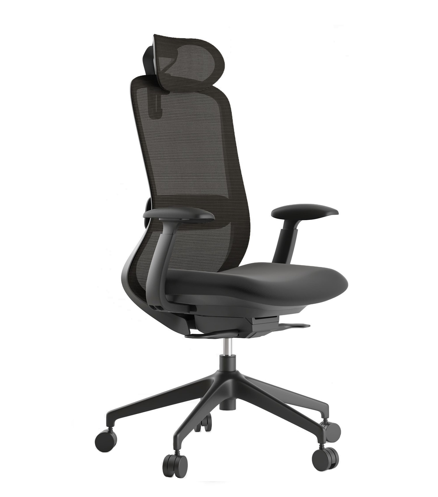 Fabricado de forma ergonómica, respaldo alto con cabecera y soporte lumbar; asiento alta densidad.
