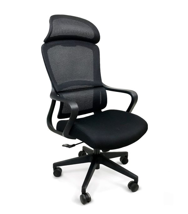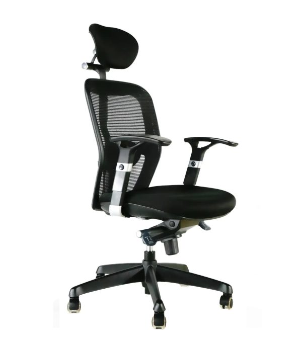 Fabricado de forma ergonómica, respaldo alto con cabecera y soporte lumbar; asiento alta densidad.