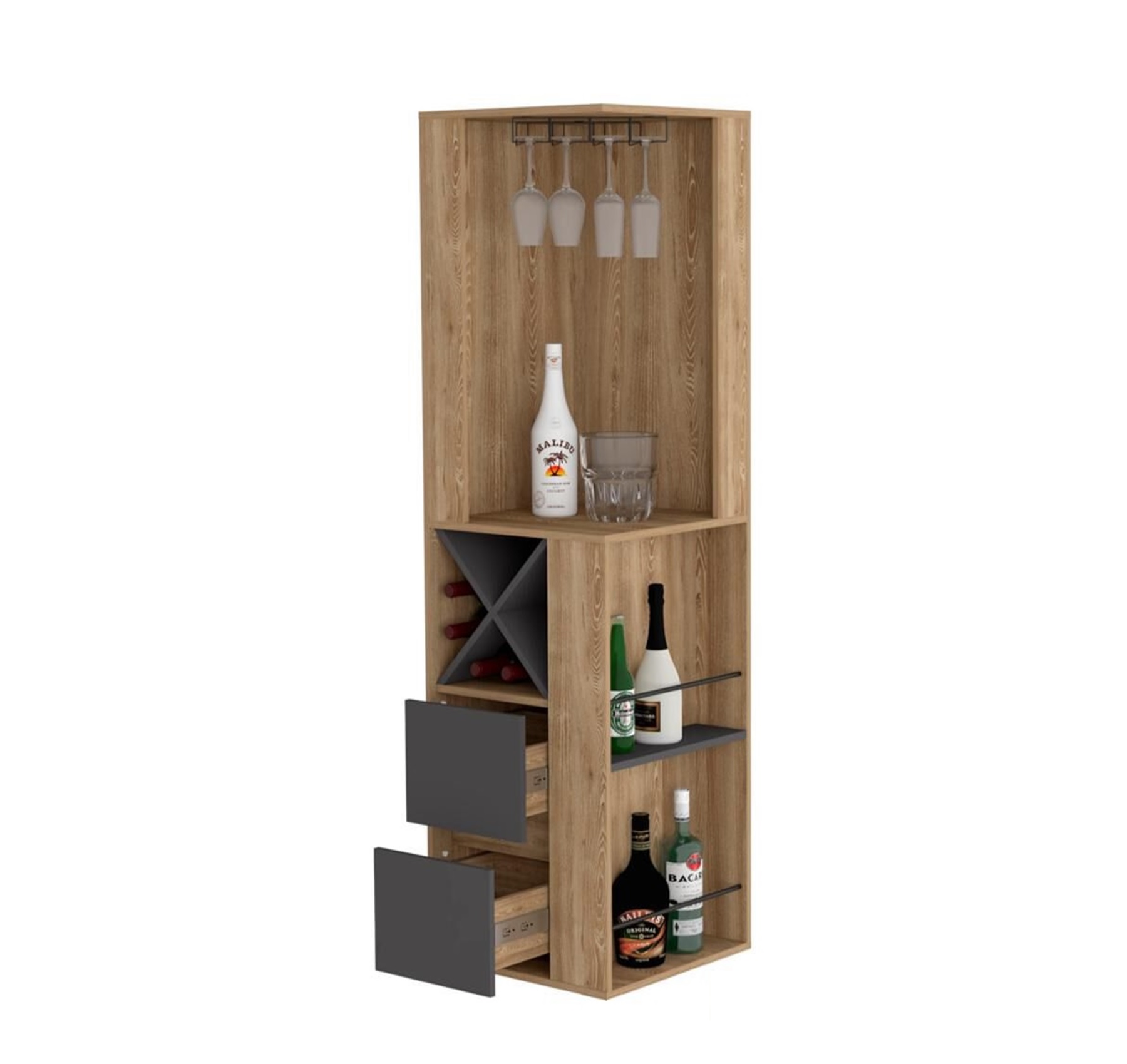 Una capacidad mayor de 15 botellas y 20 copas.