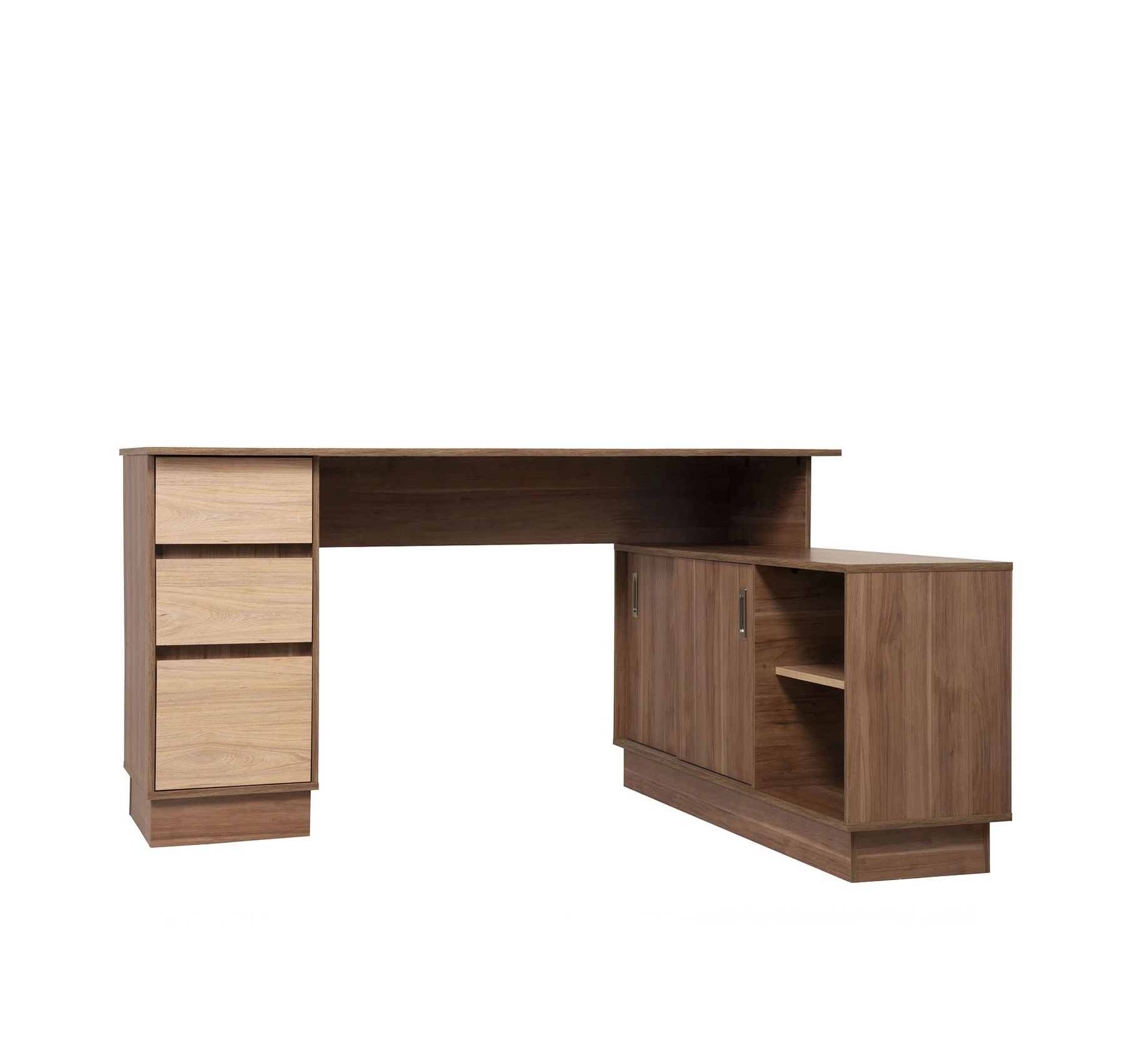 Incluye, escritorio principal con tres cajones; credenza (conector lateral) dos puertas abatibles y espacios libres.