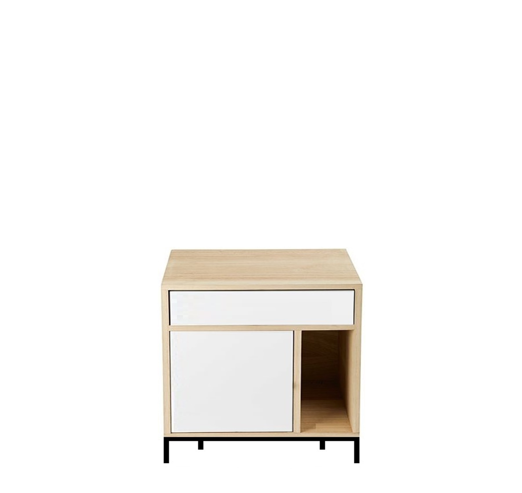 Incluye, un cajón, una puerta abatible y espacio libre, fabricados en MDF a 19mm. de espesor.